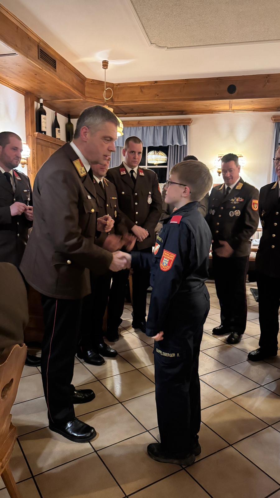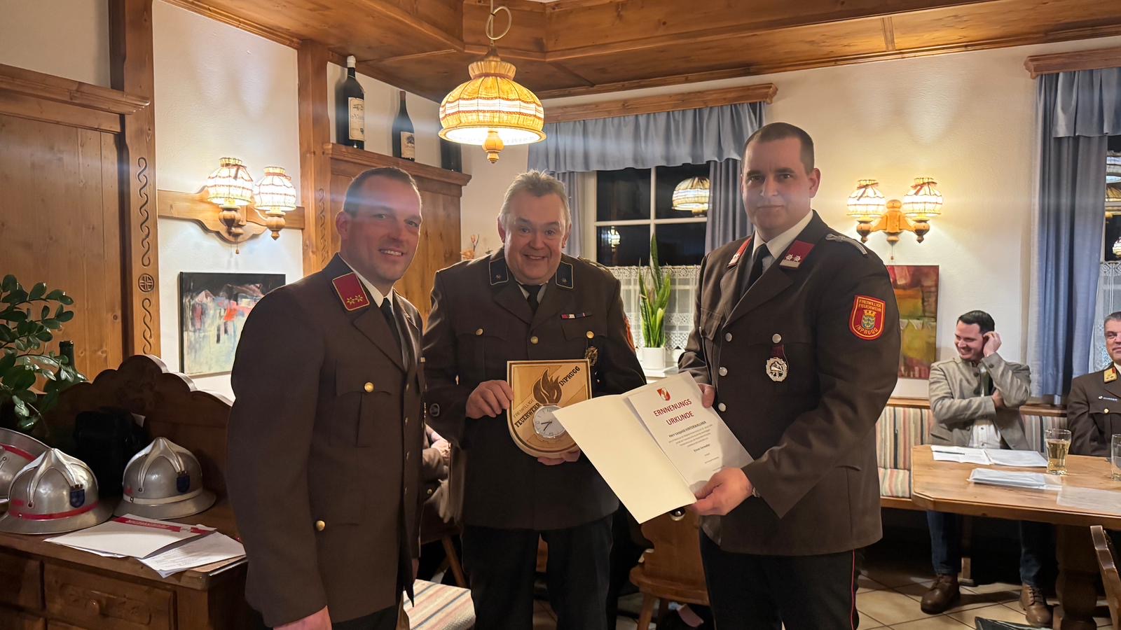 Somit traten Johann Feiertag nach 12 Jahren und Leopold Hinterwallner nach 30 Jahren im Kommando zurück. Sie wurden zum Ehrenbrandinspektor und zum Ehrenverwalter ernannt und es wurde ihnen eine Uhr für ihren langjährigen Dienst für die Feuerwehr geschenkt.