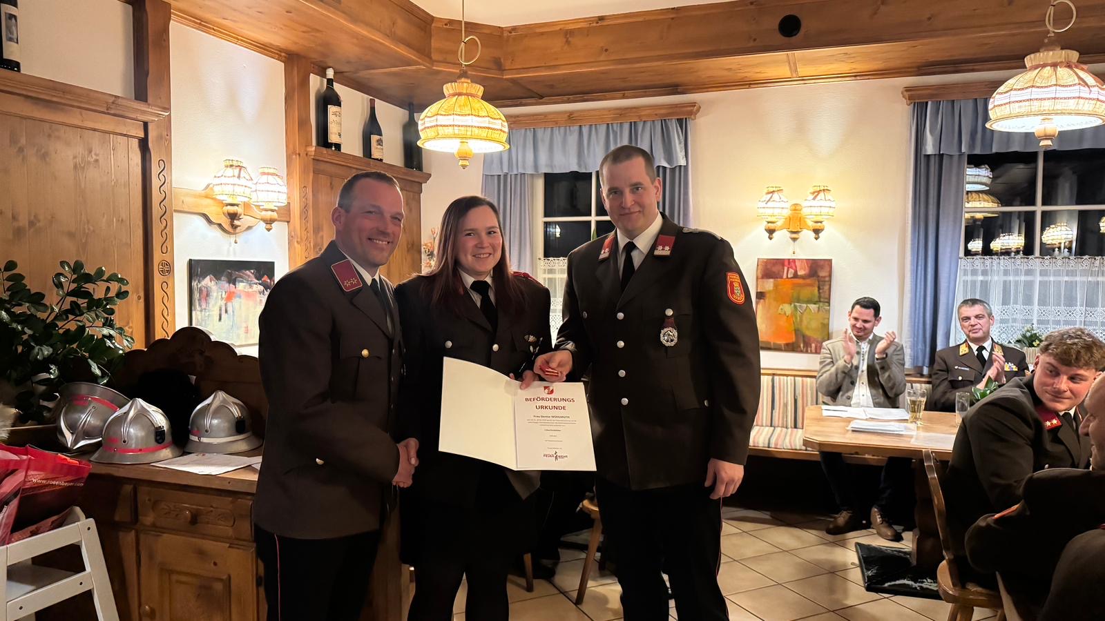 Im Zuge der Mitgliederversammlung wurden Elisabeth Heiss angelobt. Außerdem wurden Denise Wohlmuth (Löschmeister) und Tobias Keltscha (Verwaltungsmeister) befördert.